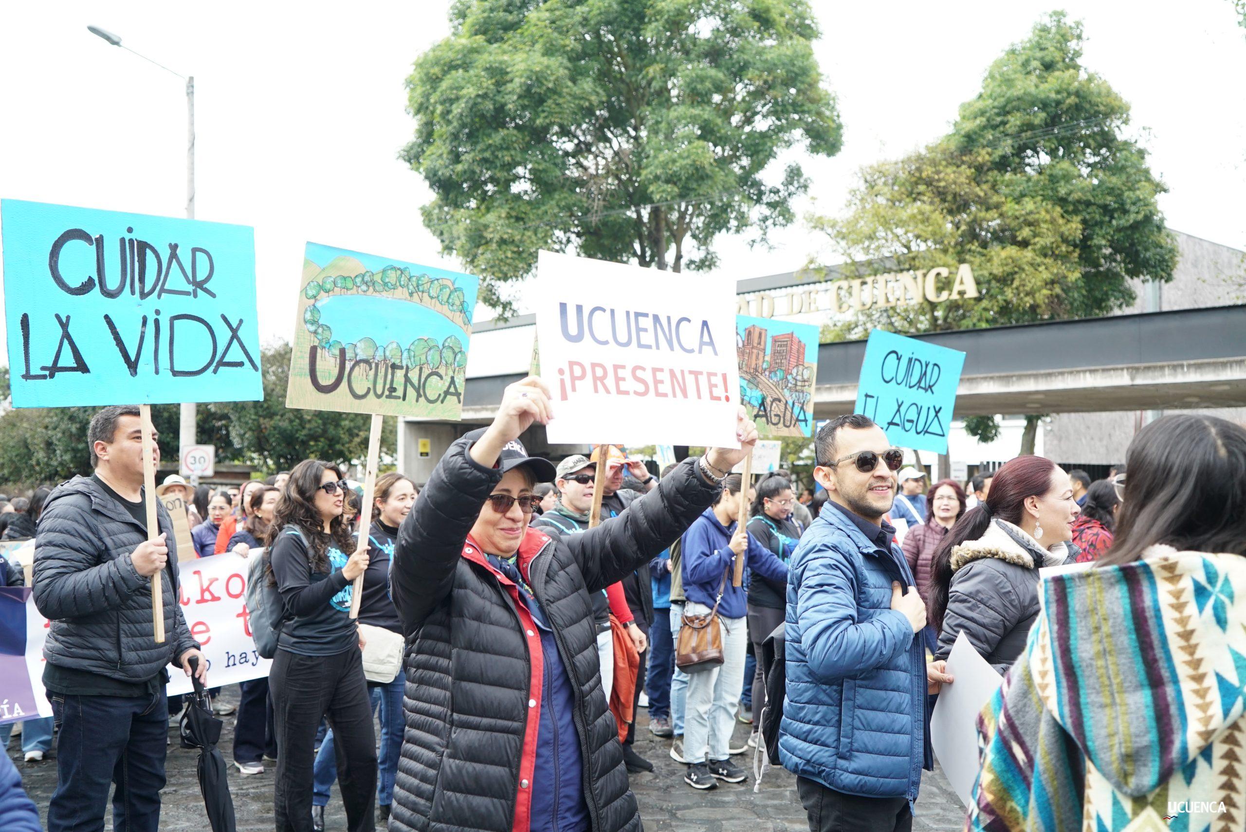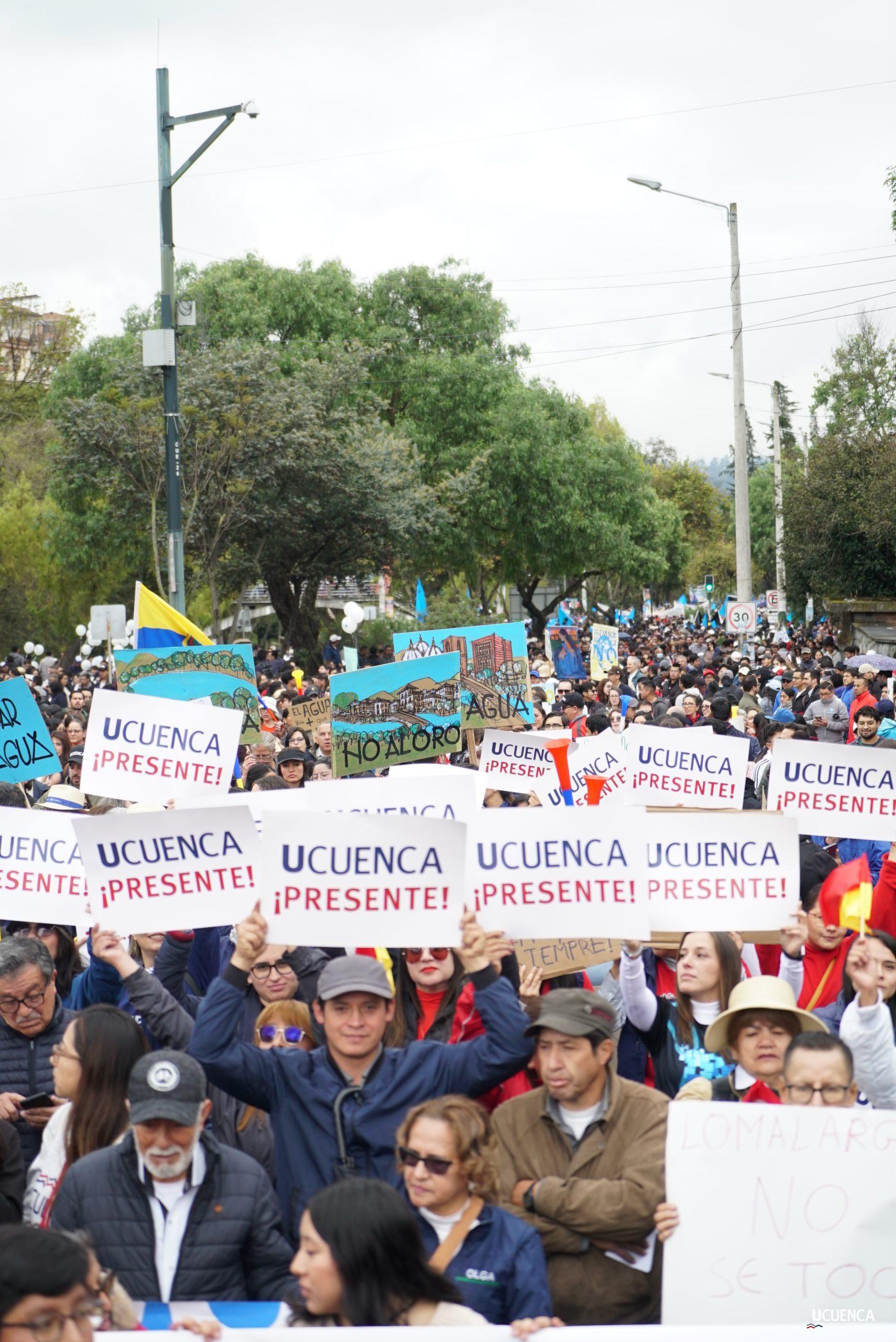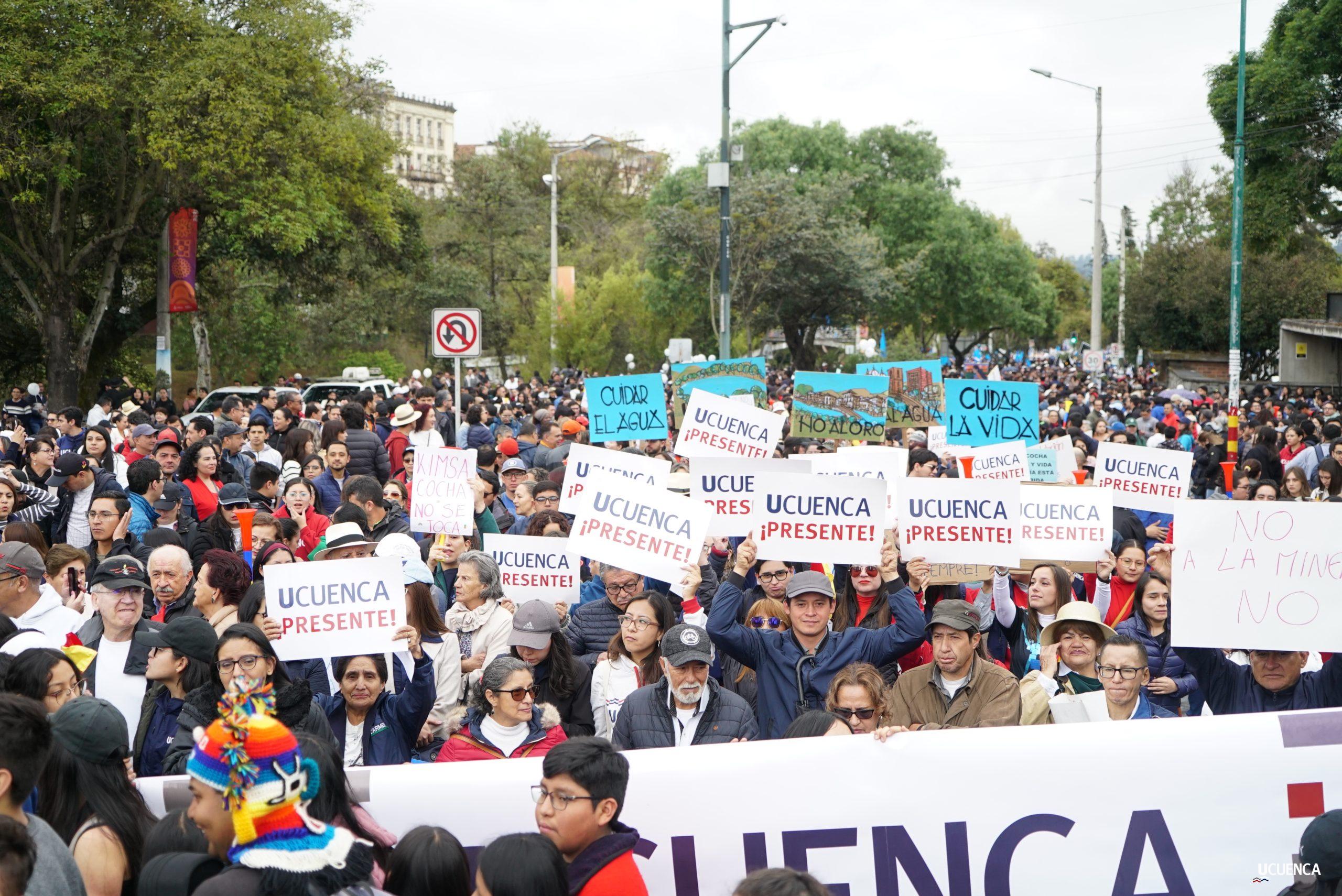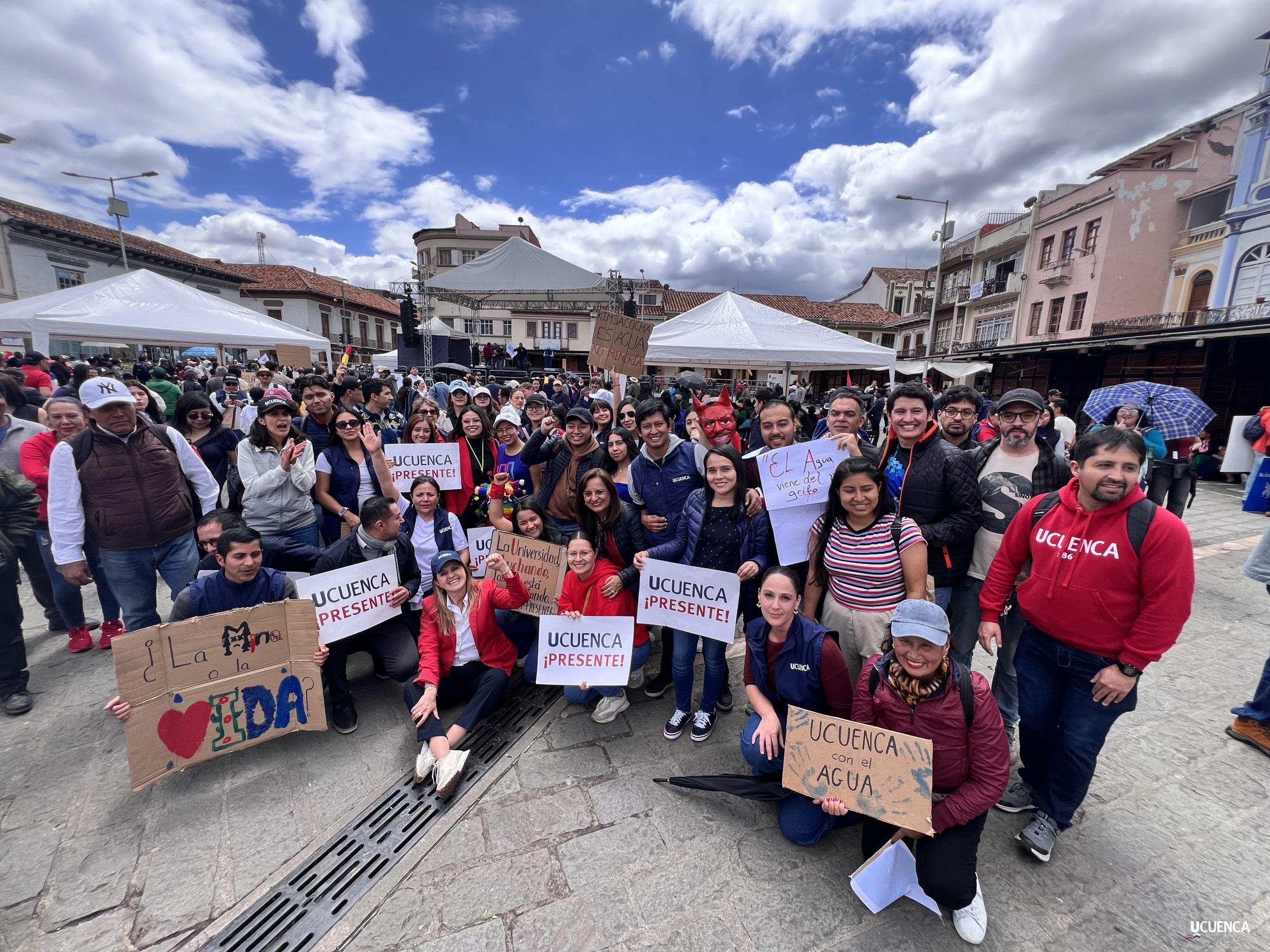 #UCuencaPresente | ¡Defendemos la vida, la constitución y la voluntad popular! ✊🏻 Estudiantes, trabajadores, docentes y personal administrativo de nuestra institución se unen a la Marcha por el Agua y en contra del proyecto minero Loma Larga, convocada por el Cabildo por el Agua de Cuenca. #KimsakochaNoSeToca.