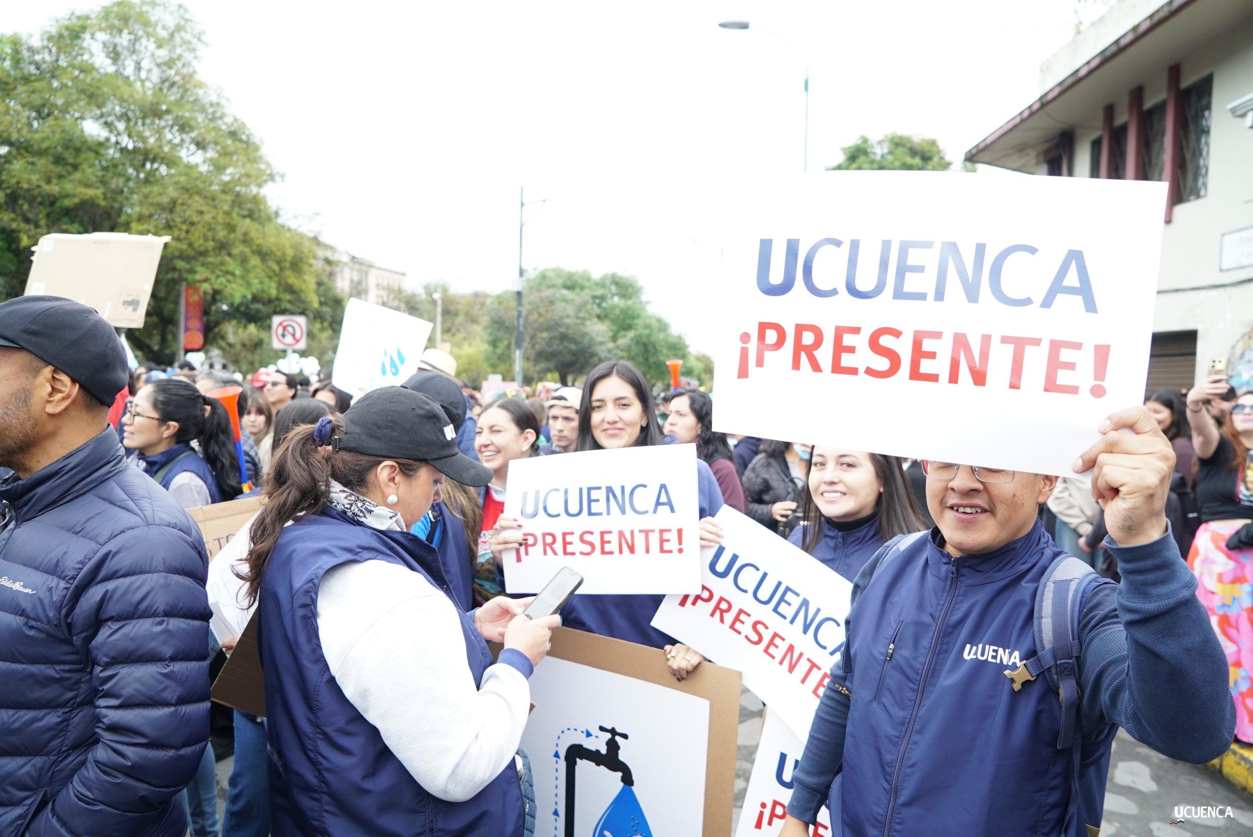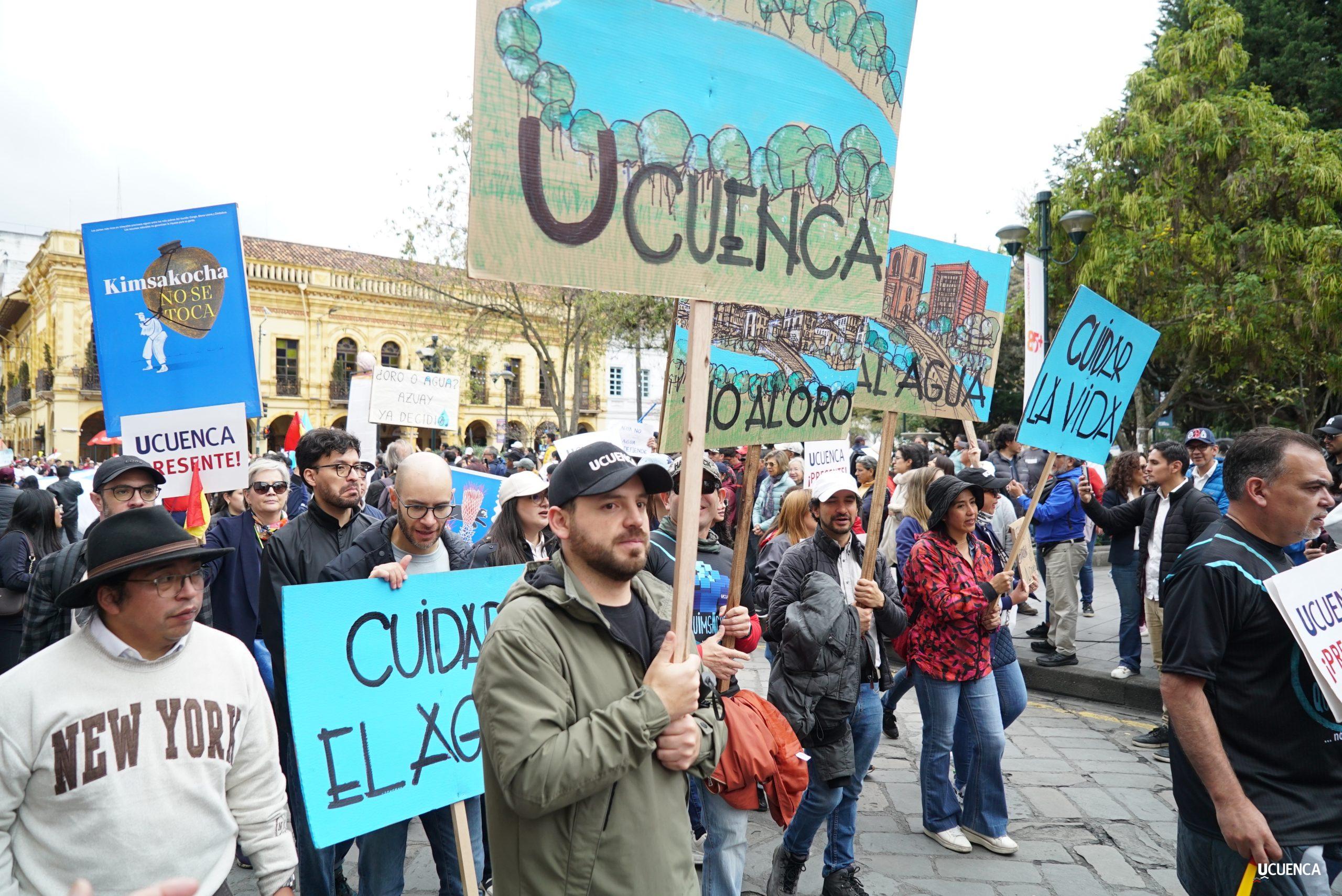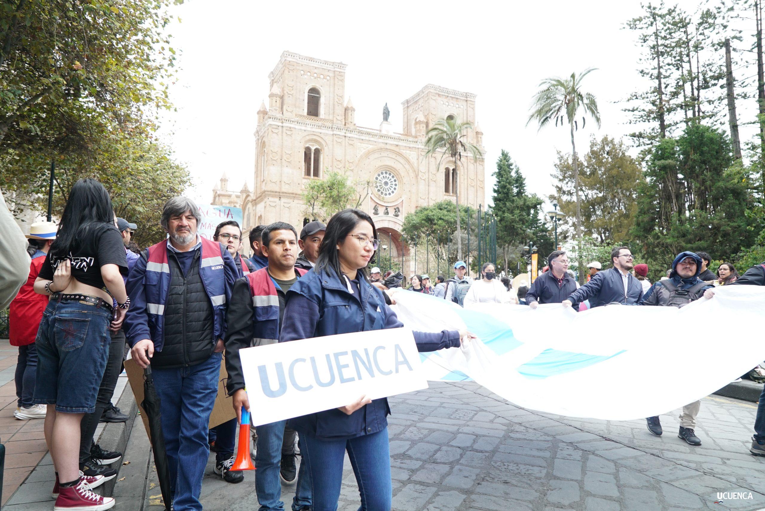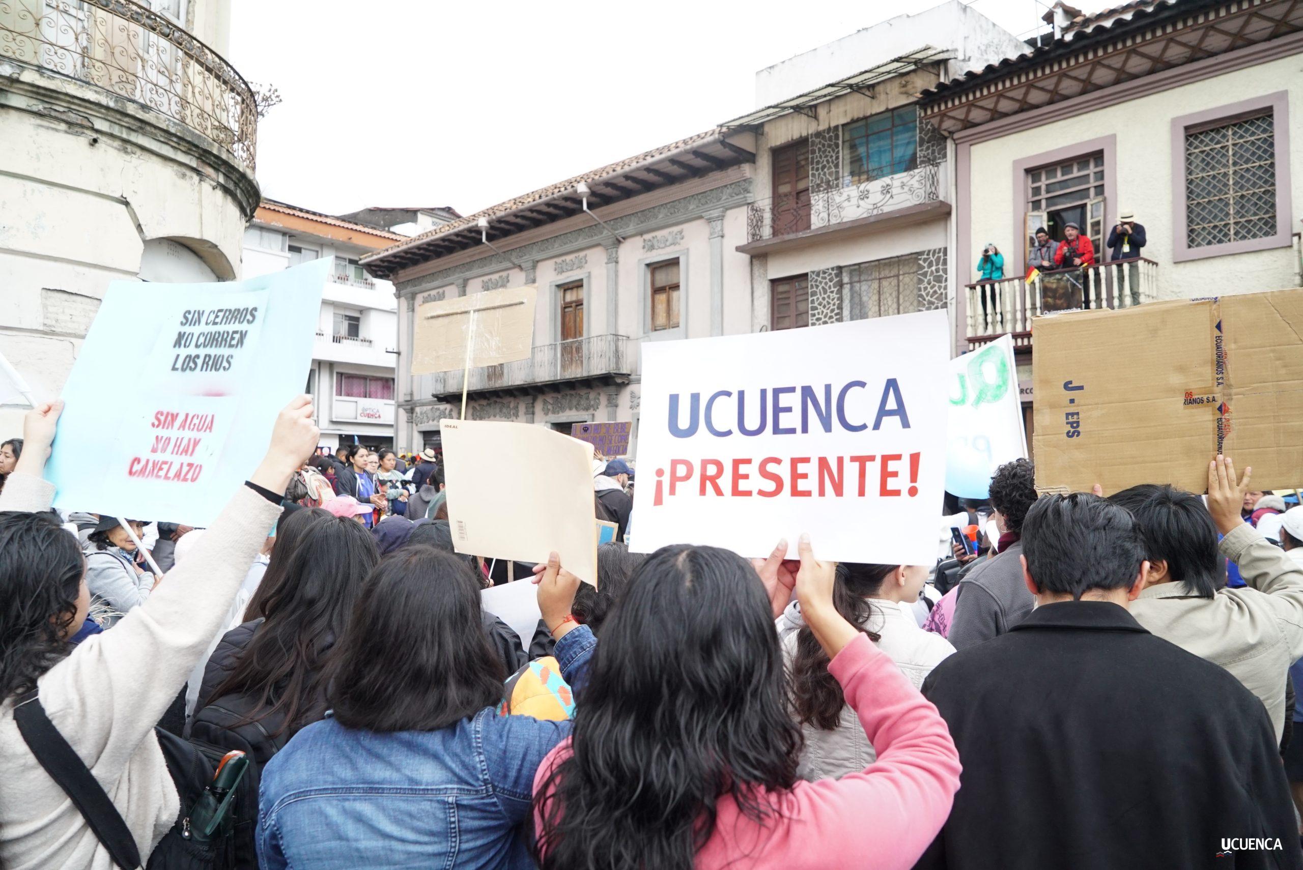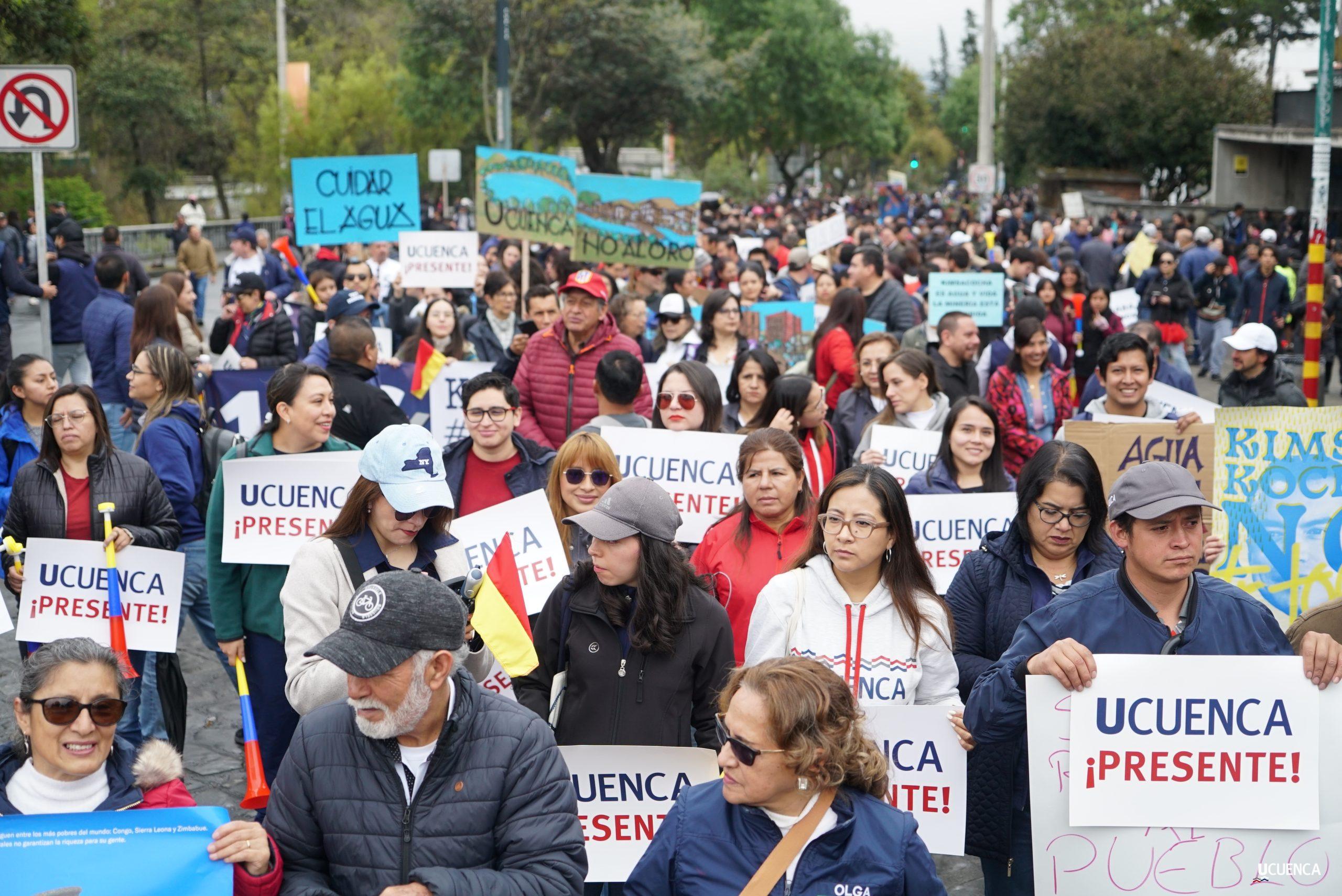 #UCuencaPresente | ¡Defendemos la vida, la constitución y la voluntad popular! ✊🏻 Estudiantes, trabajadores, docentes y personal administrativo de nuestra institución se unen a la Marcha por el Agua y en contra del proyecto minero Loma Larga, convocada por el Cabildo por el Agua de Cuenca. #KimsakochaNoSeToca.