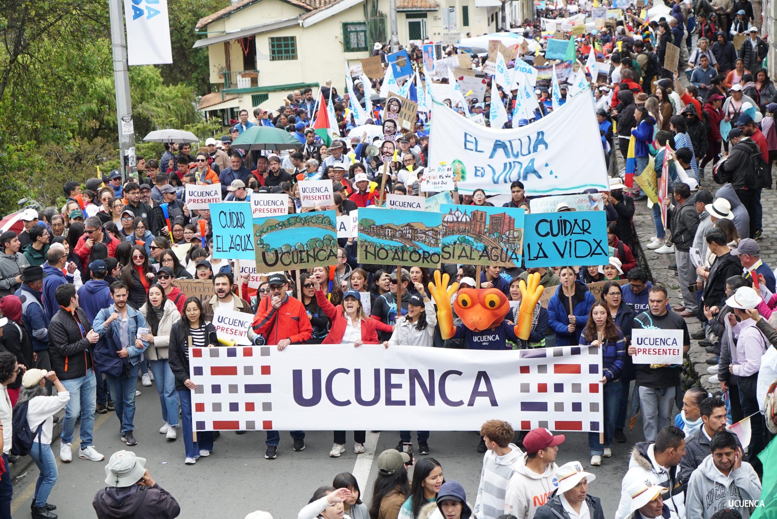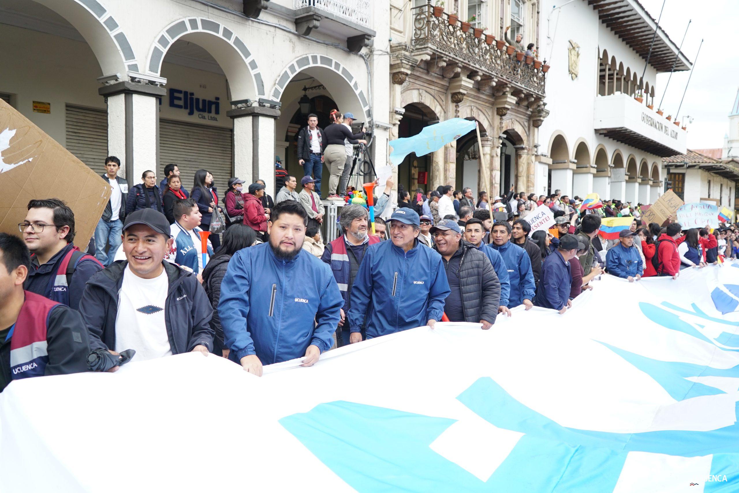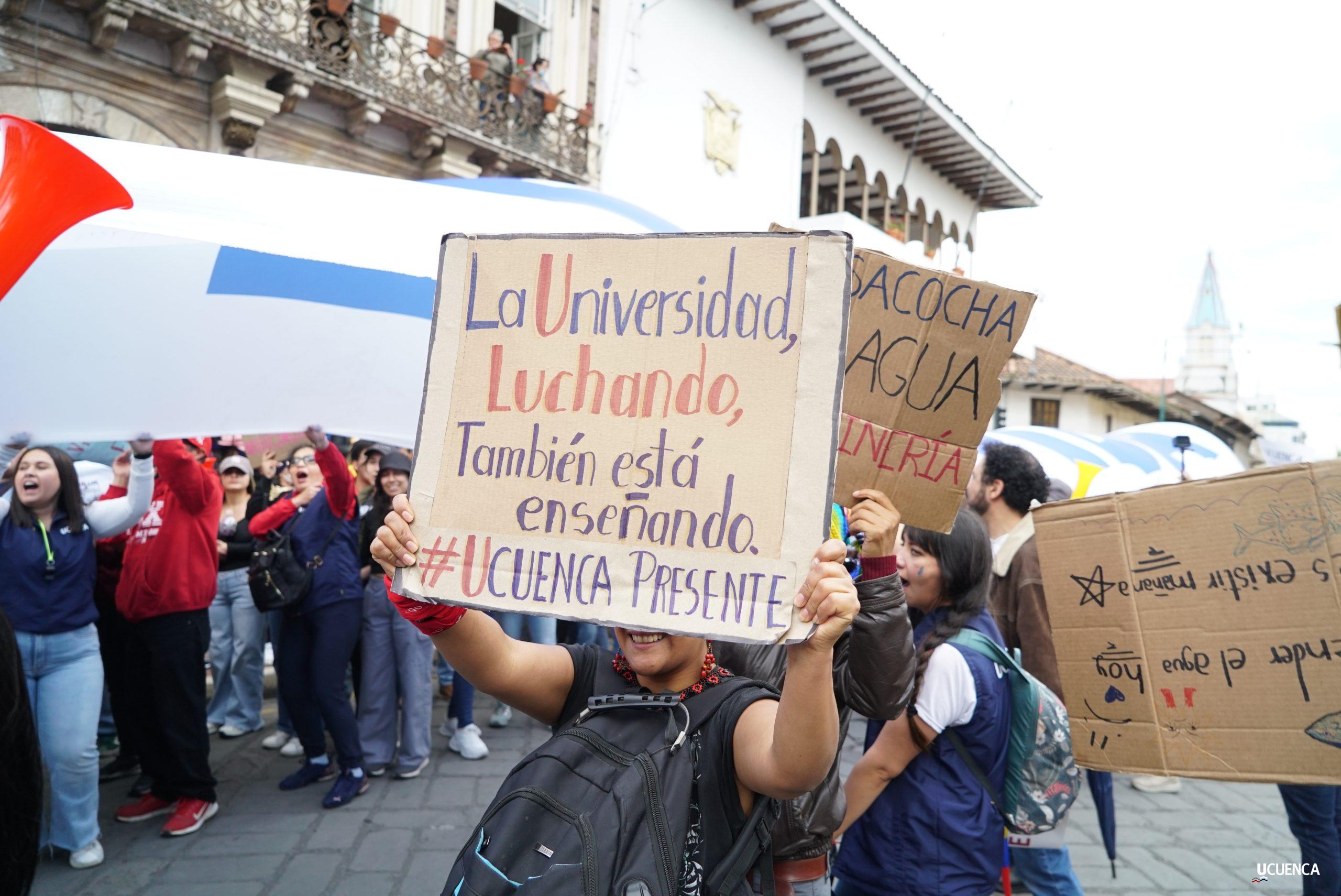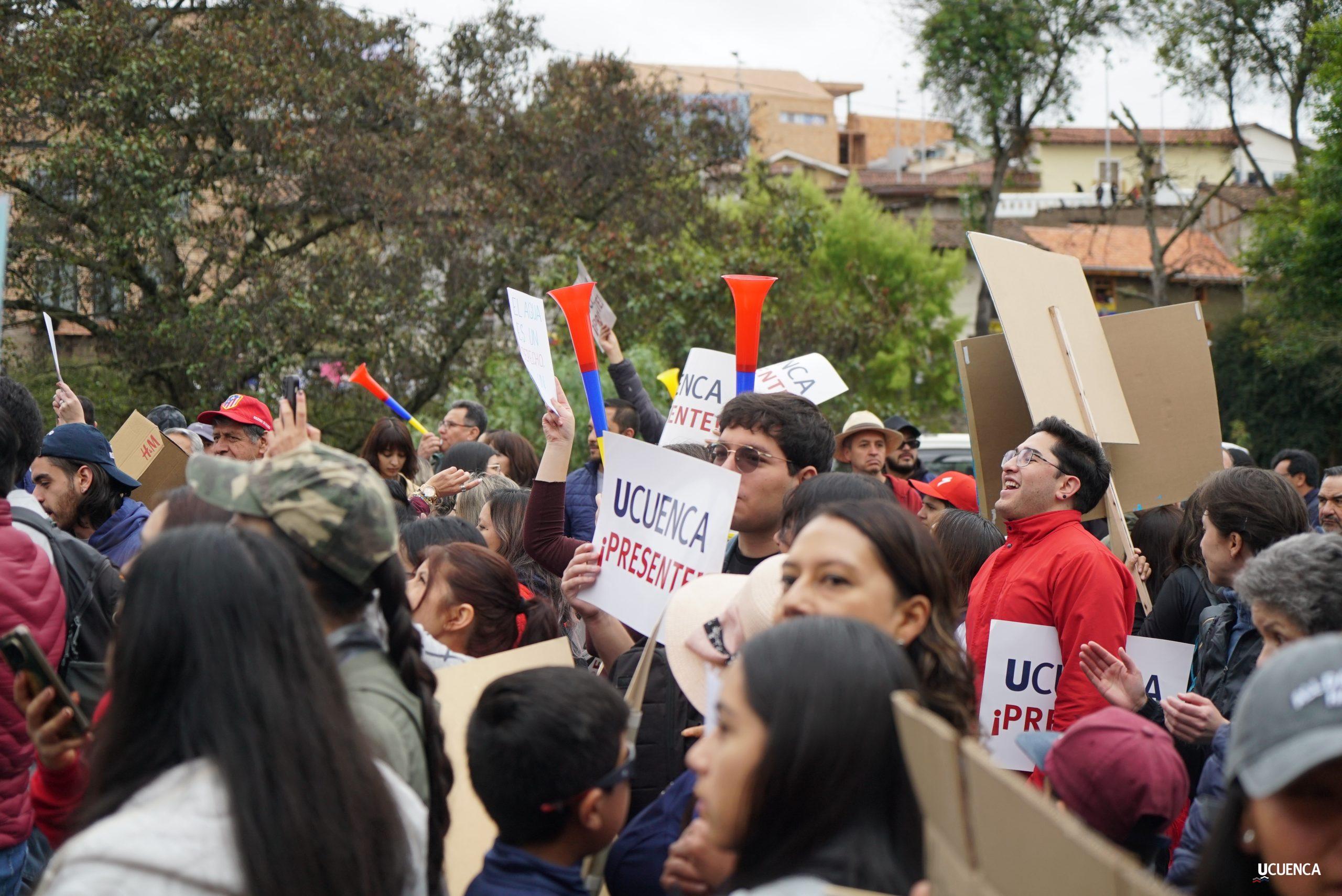 #UCuencaPresente | ¡Defendemos la vida, la constitución y la voluntad popular! ✊🏻 Estudiantes, trabajadores, docentes y personal administrativo de nuestra institución se unen a la Marcha por el Agua y en contra del proyecto minero Loma Larga, convocada por el Cabildo por el Agua de Cuenca. #KimsakochaNoSeToca.