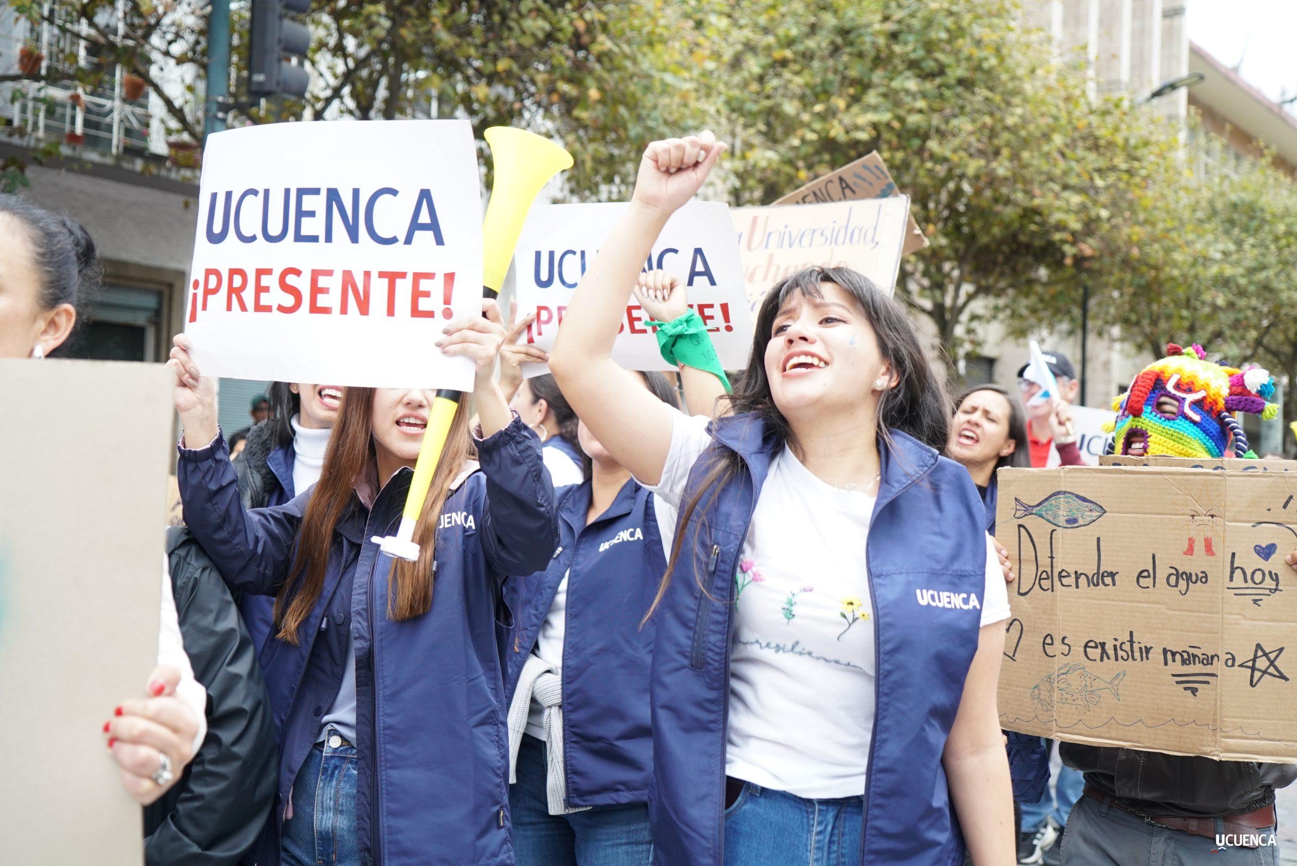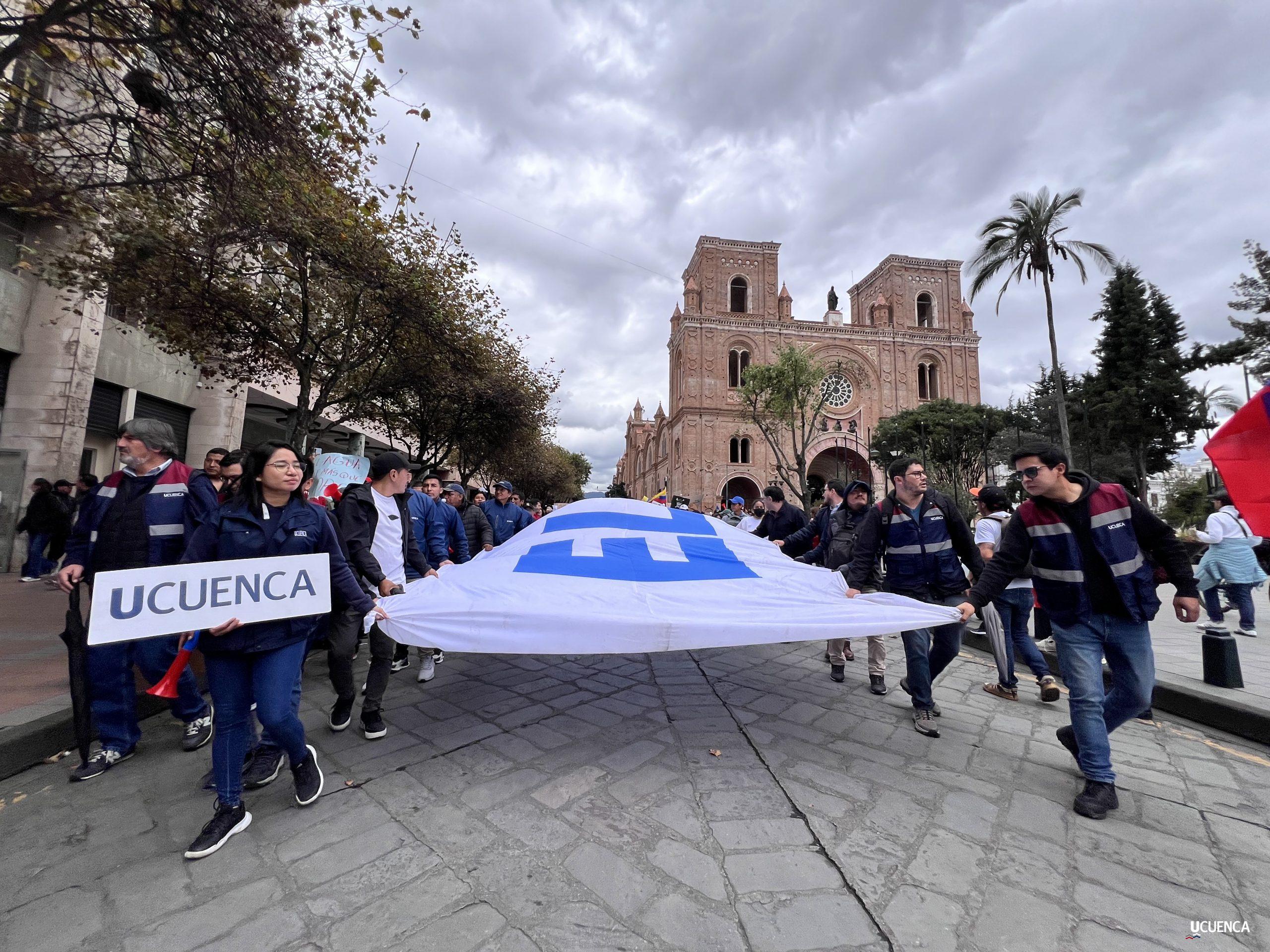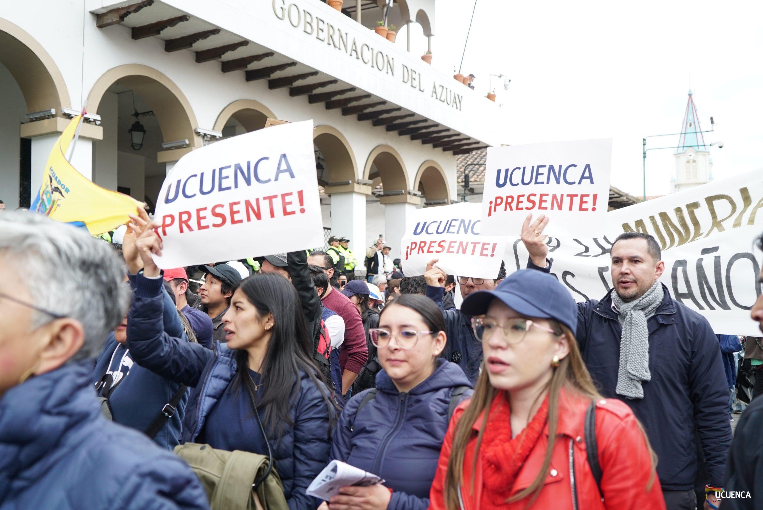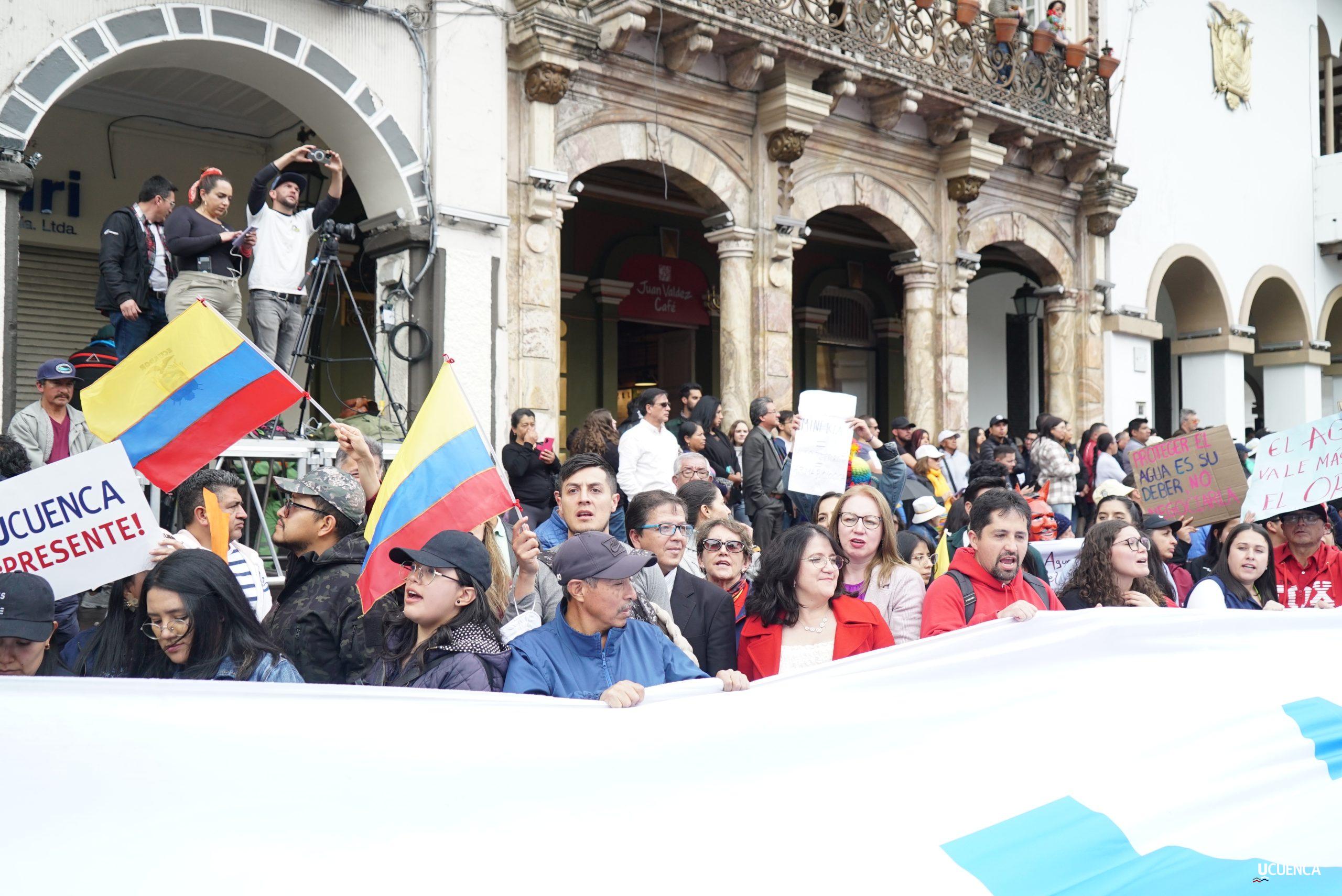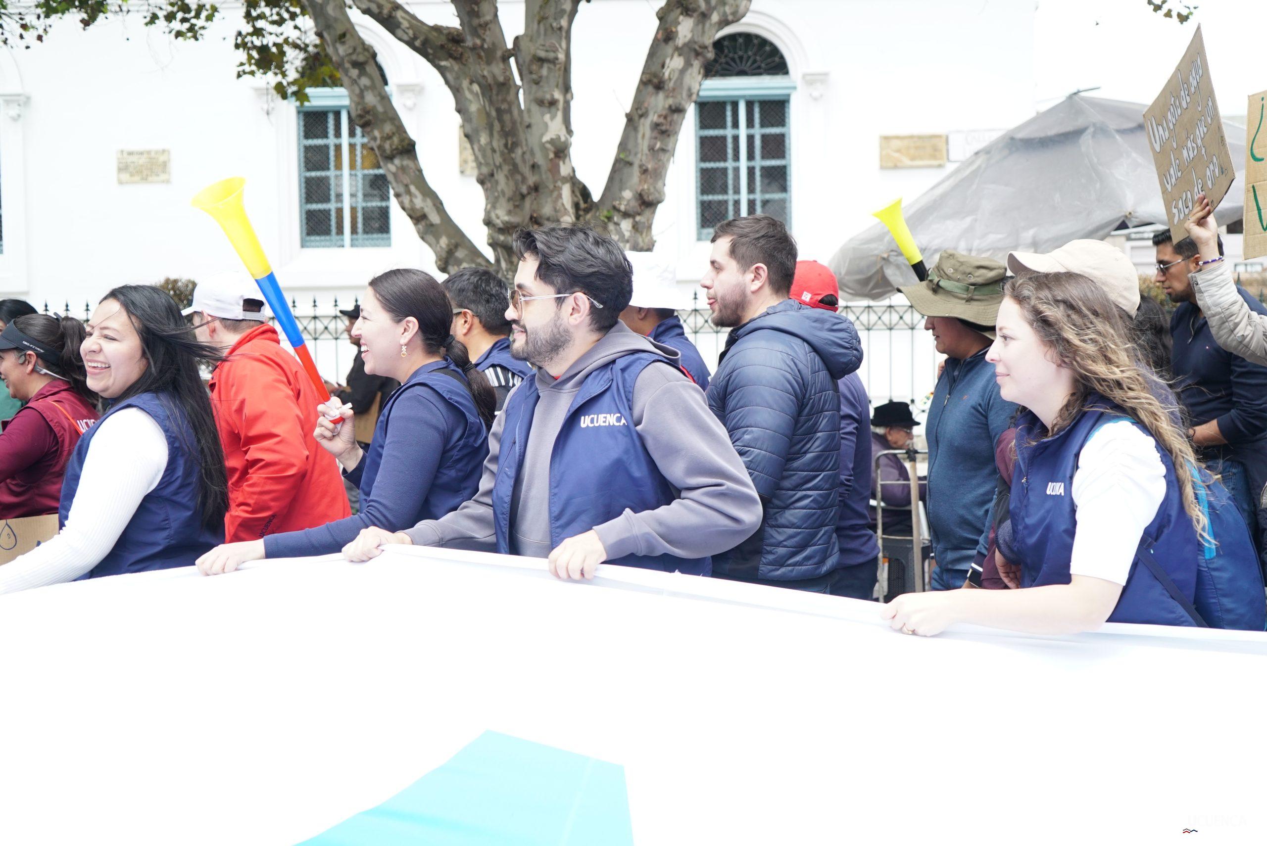 #UCuencaPresente | ¡Defendemos la vida, la constitución y la voluntad popular! ✊🏻 Estudiantes, trabajadores, docentes y personal administrativo de nuestra institución se unen a la Marcha por el Agua y en contra del proyecto minero Loma Larga, convocada por el Cabildo por el Agua de Cuenca. #KimsakochaNoSeToca.