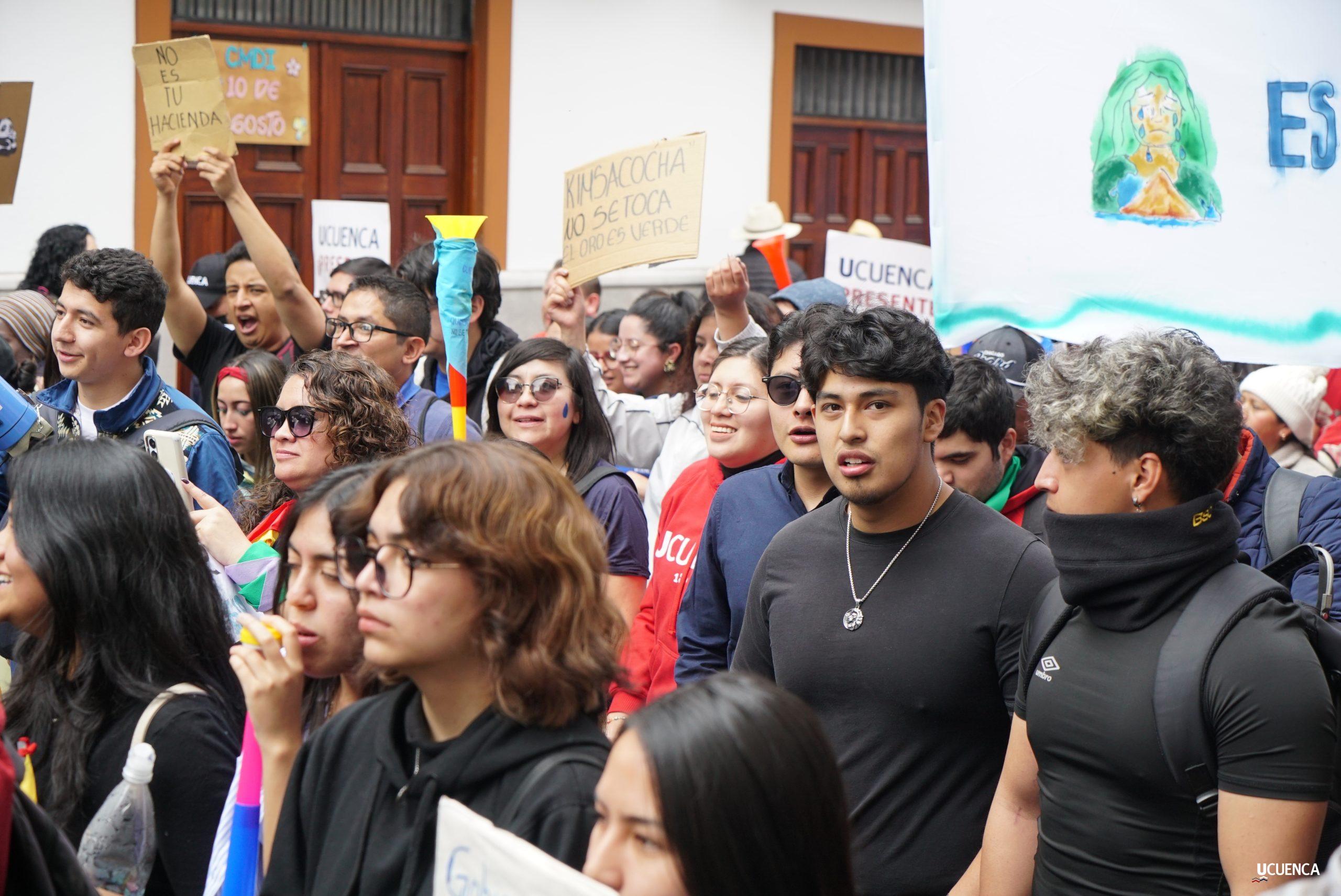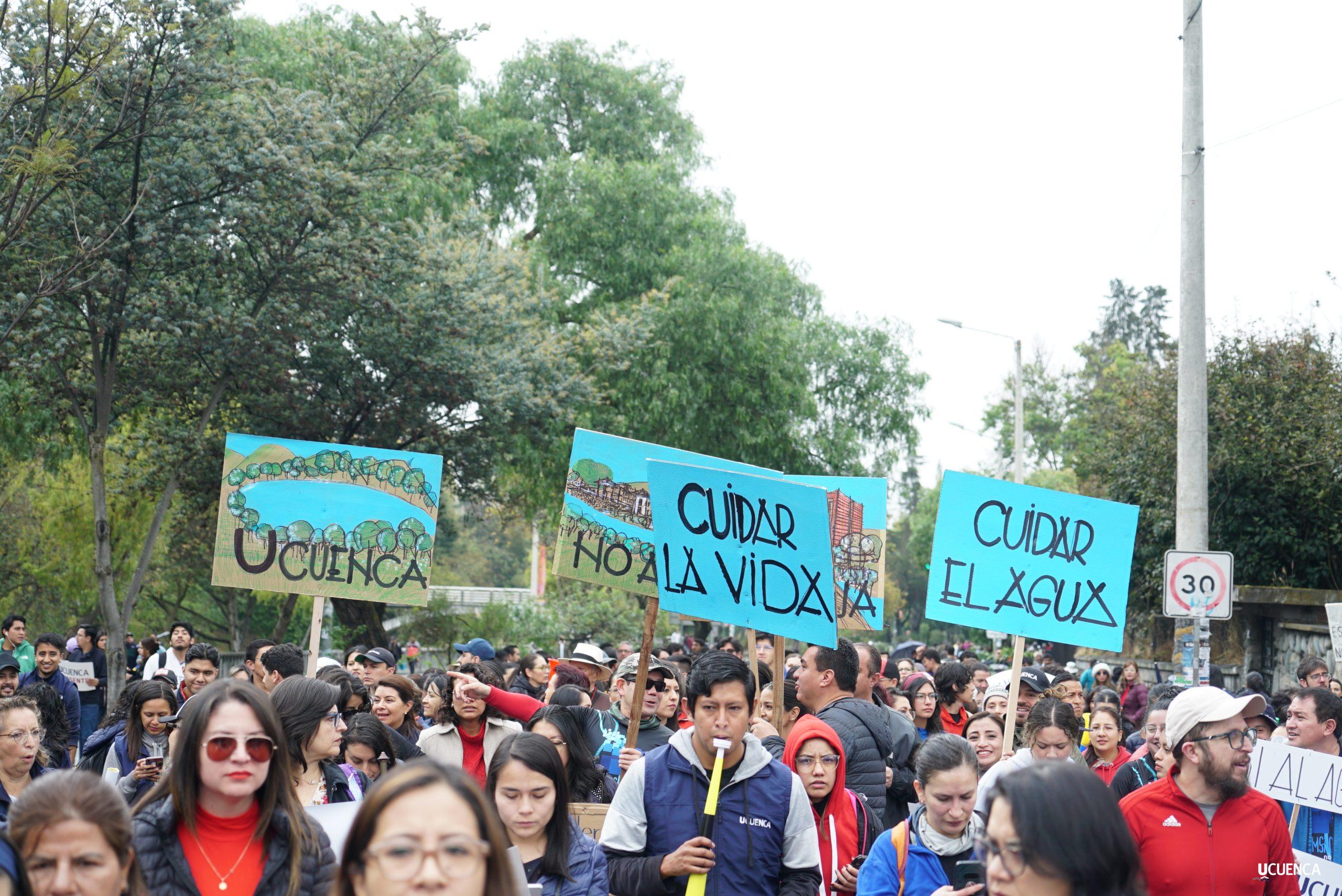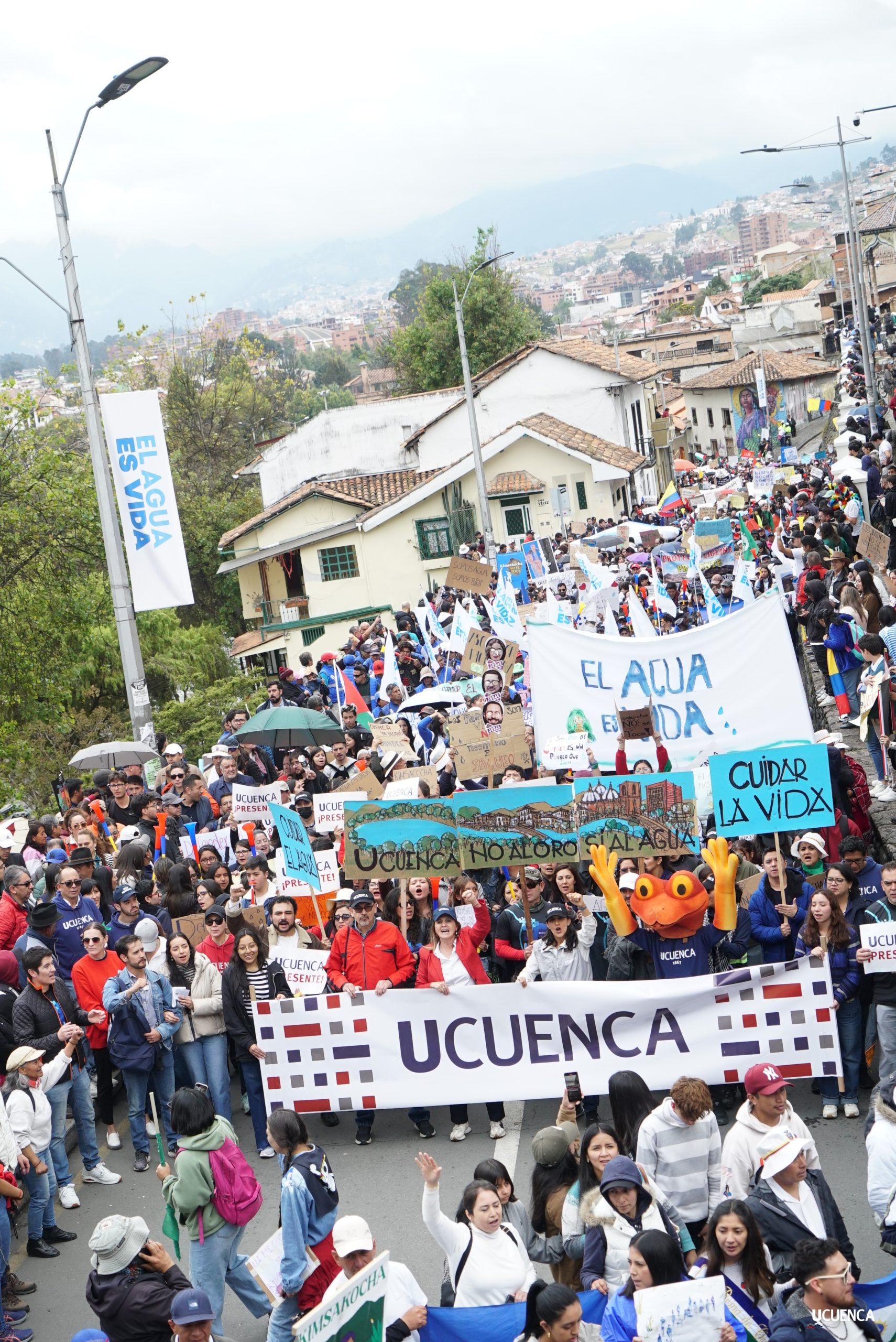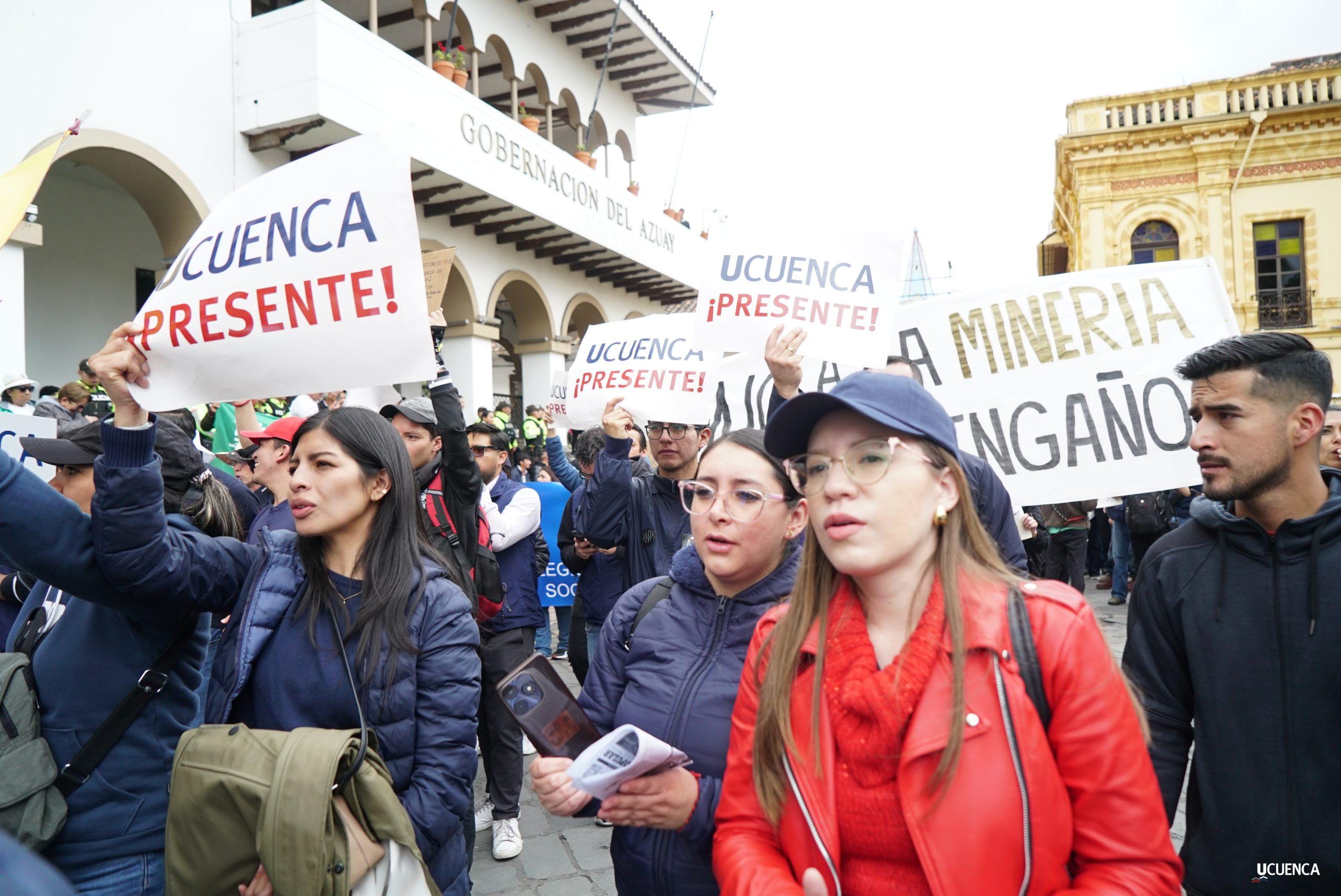 #UCuencaPresente | ¡Defendemos la vida, la constitución y la voluntad popular! ✊🏻 Estudiantes, trabajadores, docentes y personal administrativo de nuestra institución se unen a la Marcha por el Agua y en contra del proyecto minero Loma Larga, convocada por el Cabildo por el Agua de Cuenca. #KimsakochaNoSeToca.