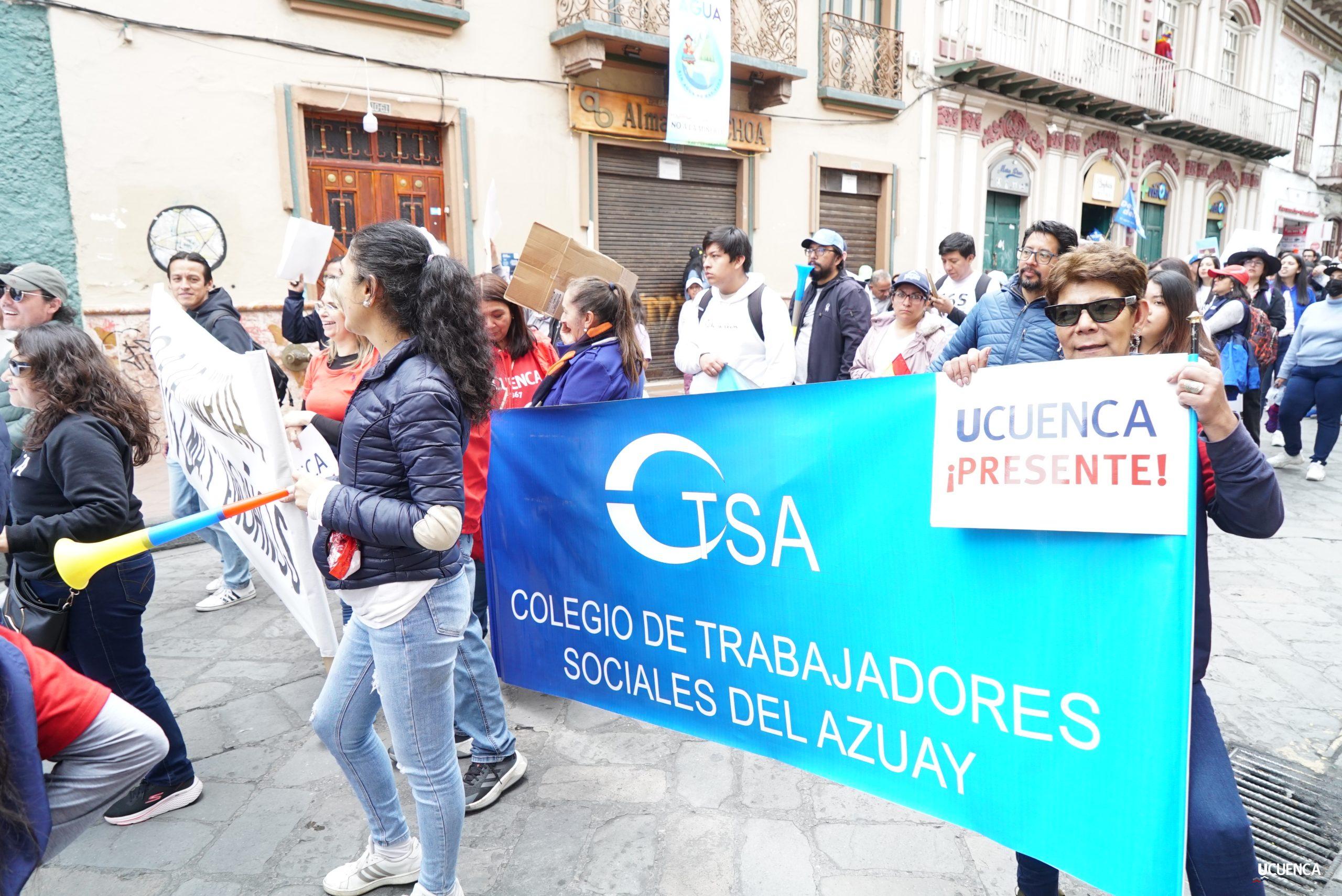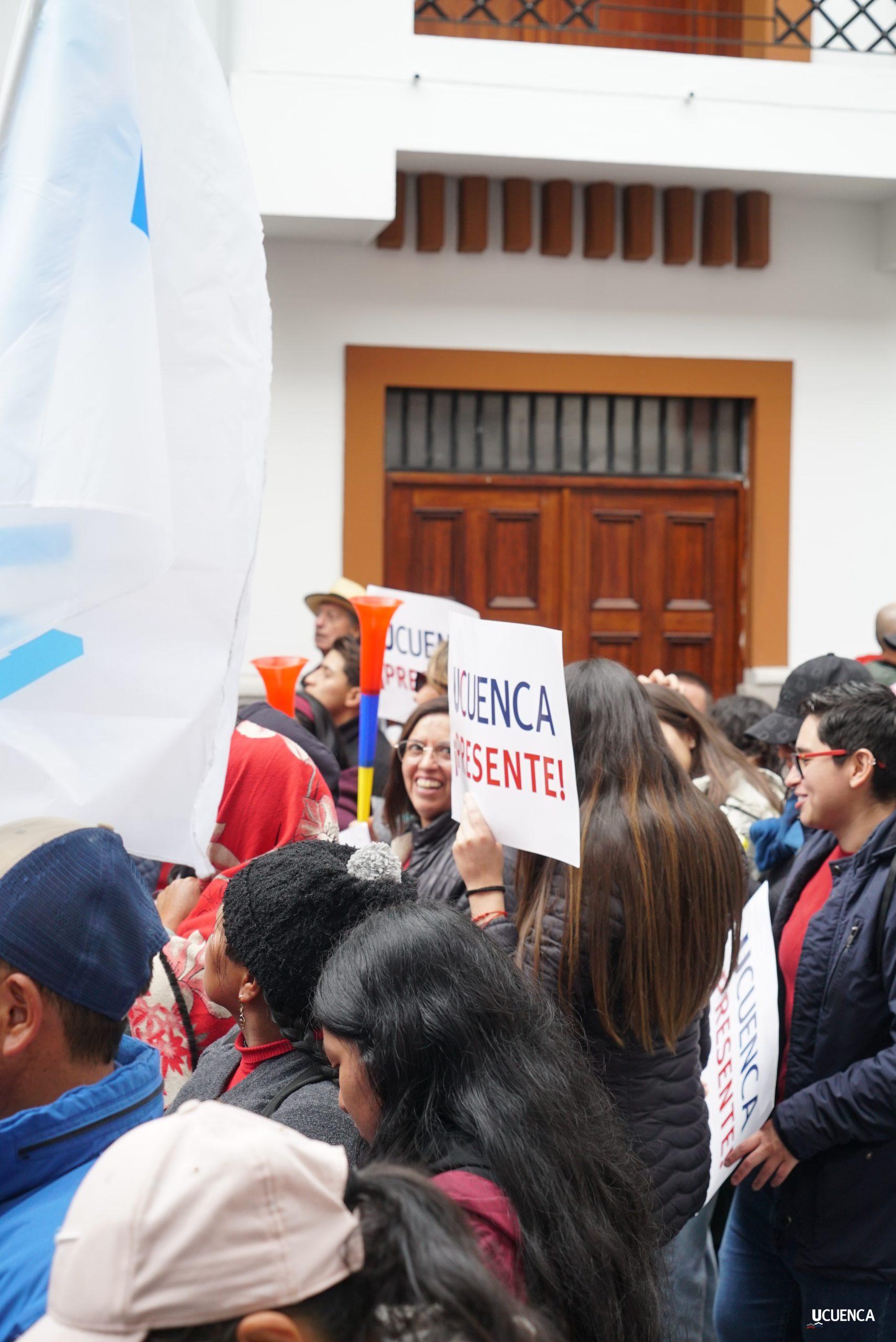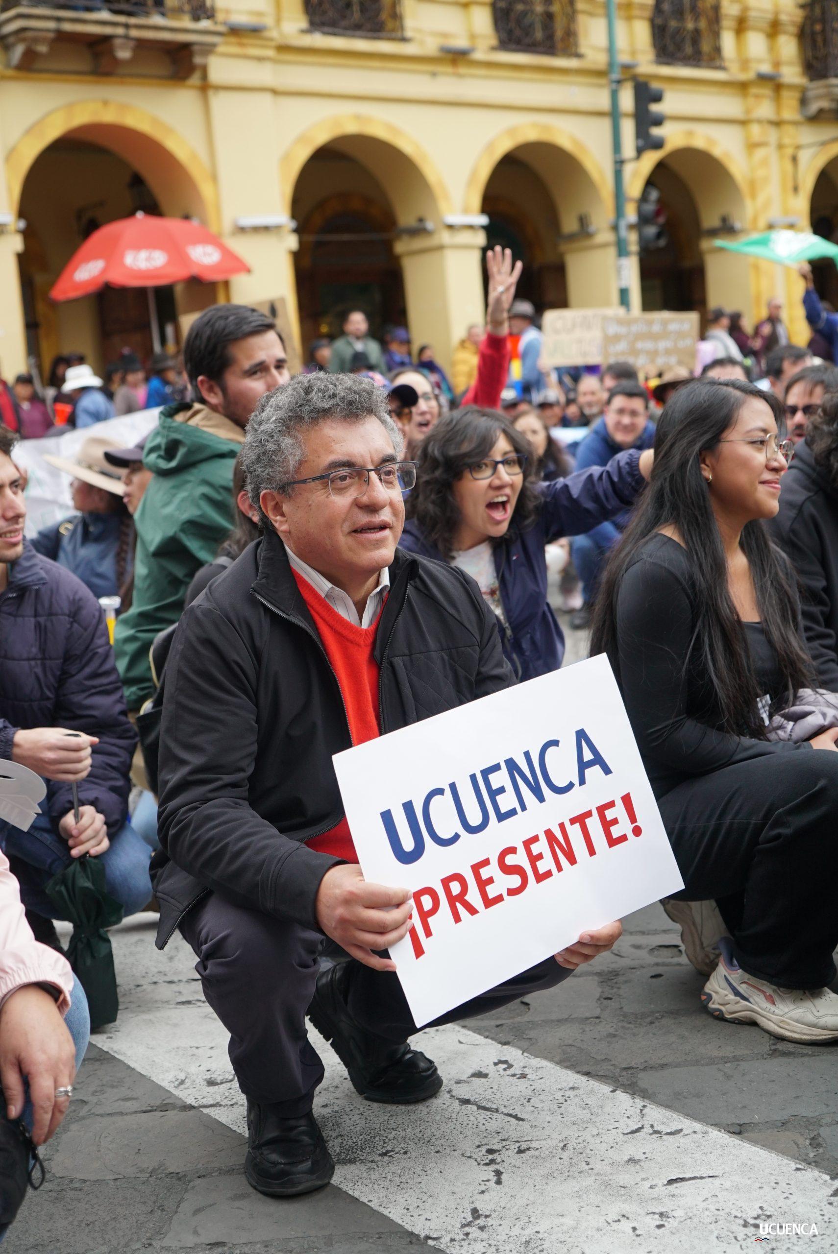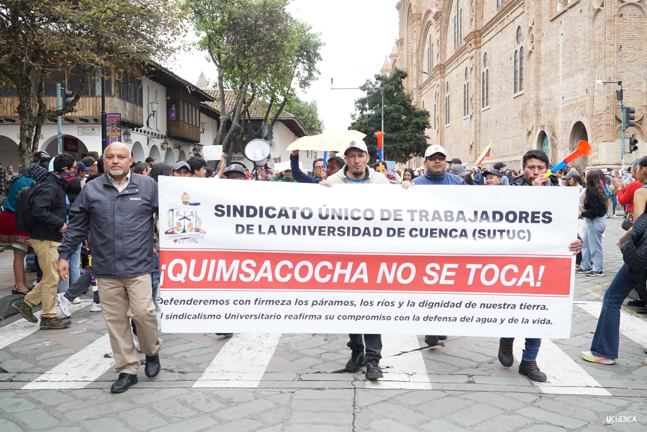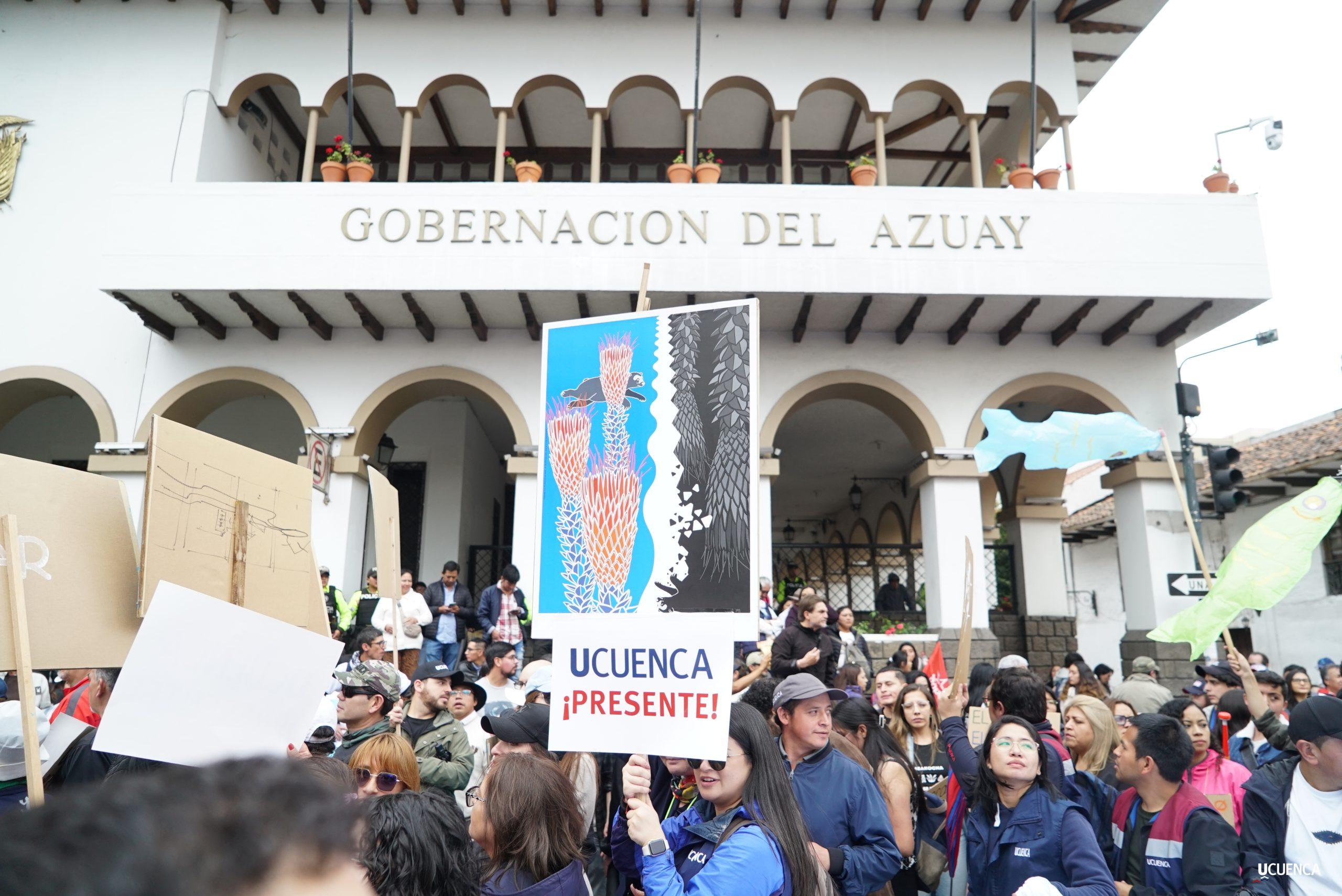 #UCuencaPresente | ¡Defendemos la vida, la constitución y la voluntad popular! ✊🏻 Estudiantes, trabajadores, docentes y personal administrativo de nuestra institución se unen a la Marcha por el Agua y en contra del proyecto minero Loma Larga, convocada por el Cabildo por el Agua de Cuenca. #KimsakochaNoSeToca.